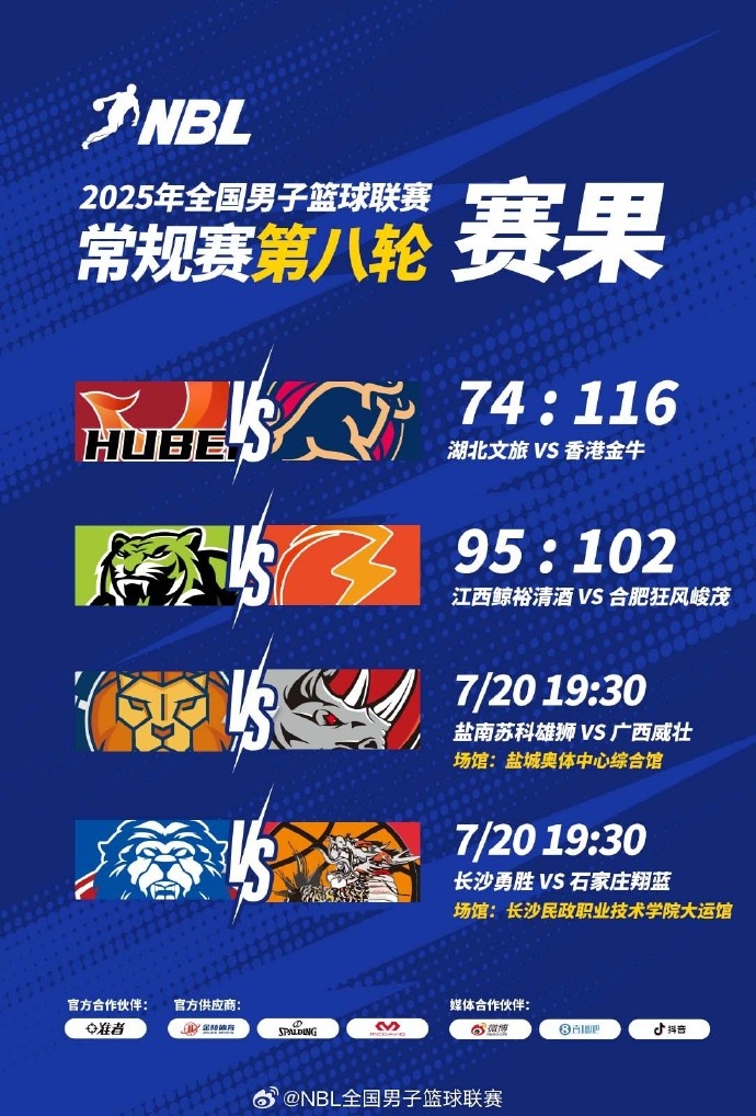 NBL今日赛果:中国香港金牛大胜湖北文旅 江西不敌合肥