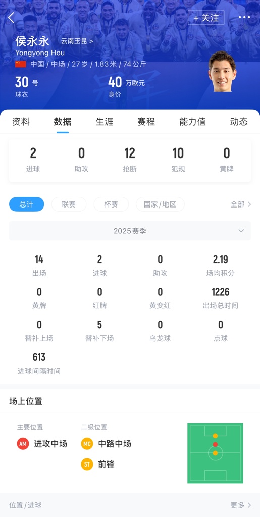 06月11日讯 国足1-0巴林的比赛是侯永永首次进入中国男足的正式比赛名单,这场比赛侯永永最终没有得到出场机会。
