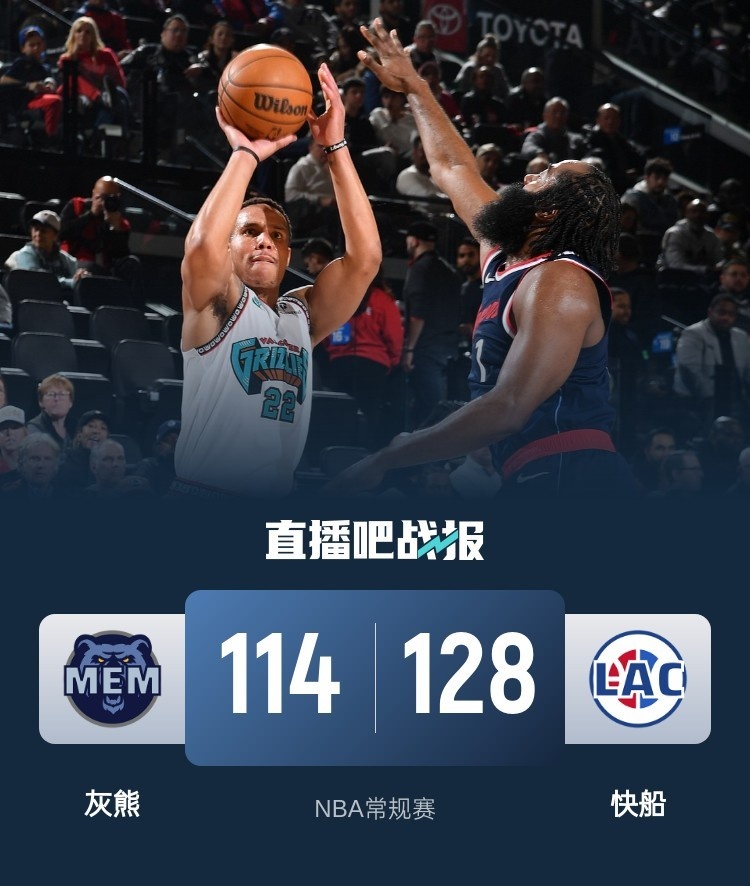 开场后快船以9-0开局,随后灰熊多点开花回敬一波攻势将比分反超,两队经过短暂的纠缠后,贝恩外线连中三记三分带领灰熊又掀起一波攻势将分差拉大到两位数。第二节上来莱昂纳德接连拿分,开始灰熊还能靠进攻内线保持优势,但随着哈登和鲍威尔发力快船完成反超。易边再战,快船延续攻势多点开花,莱昂纳德也依旧手感火热,场上分差被迅速拉开到20分以上,此后灰熊也无力追分,最终快船128-114轻松击败灰熊取得2连胜。