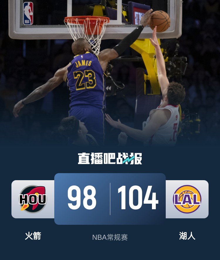 文森特+芬尼12记三分合砍40分 东詹36分 湖人终结火箭三连胜