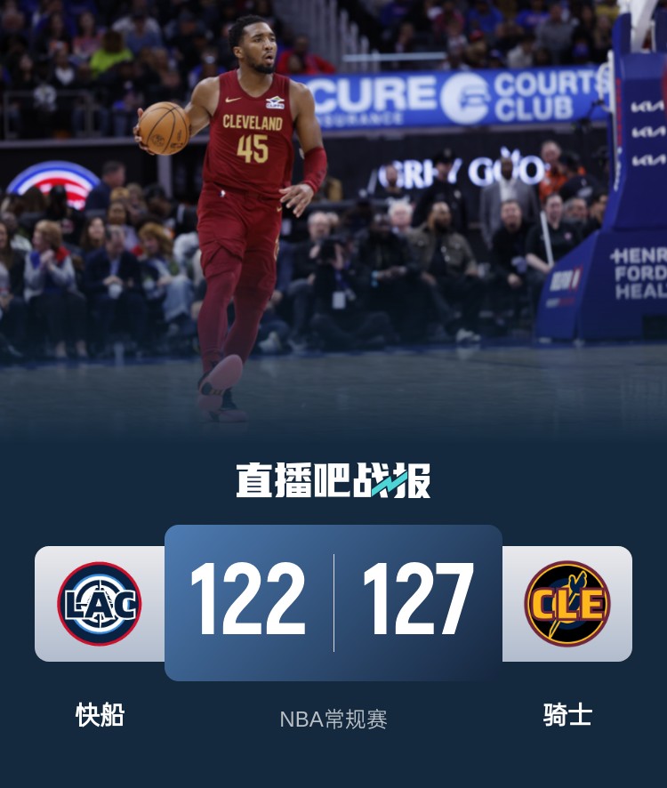 米切尔24+12+7 哈登24+8+8 鲍威尔34分 骑士3人20+击退快船