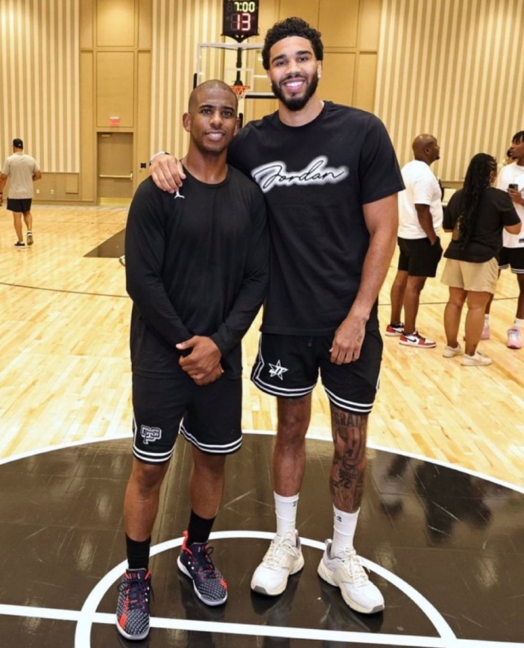 8月1日讯 今天,凯尔特人球星塔图姆在拉斯维加斯携手保罗开办精英训练营。