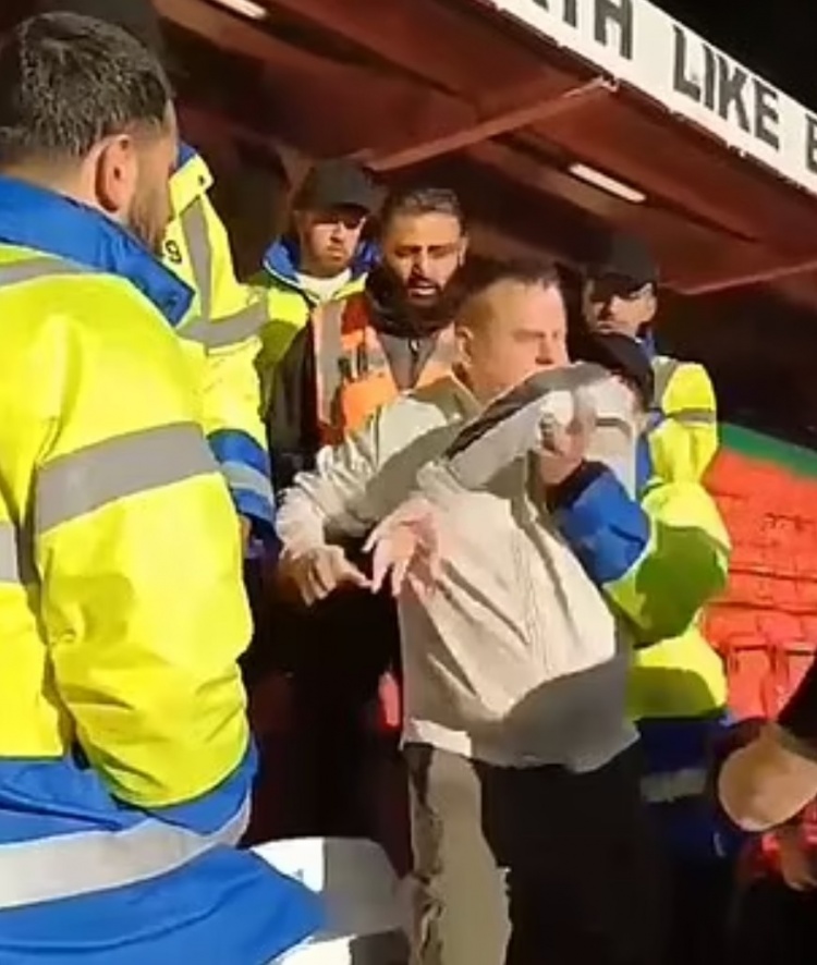 一位拿着相机的球迷说:“这真是他妈的一团糟,Fxxx,没这个必要。都他妈的录下来了,这只是抗议,这是一场静坐,反对格雷泽家族,所以我才一直在录。我们只是想他妈的抗议,这只是一种抗议!”之后,这名球迷被释放,然后似乎在问他们的争执是否被摄像机拍到了。在他们离开的过程中,一名安保似乎向这位球迷发出了警告。