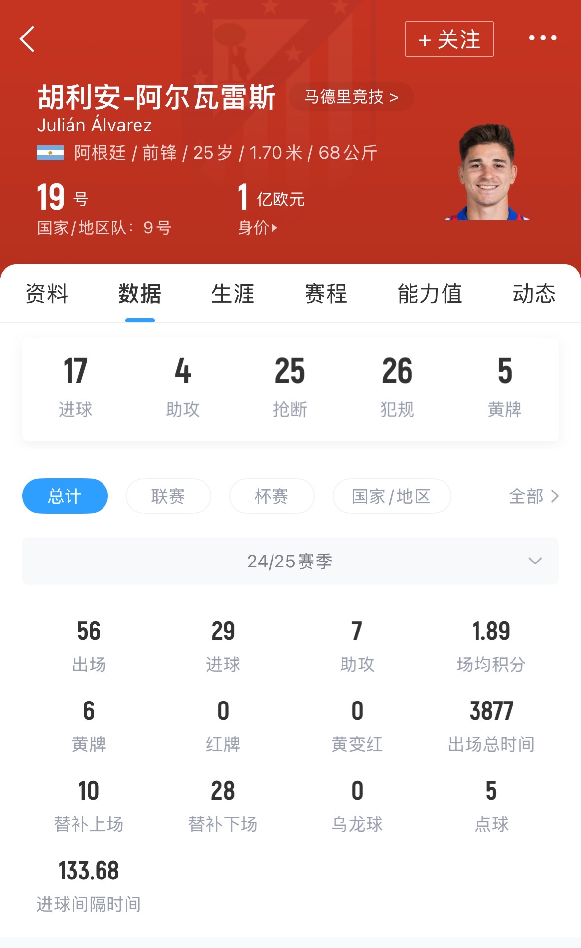 在巴萨中锋的候选人名单中,接替莱万的主要人选是阿尔瓦雷斯,这位阿根廷前锋与马竞的合同在2030年才到期。目前球员德转身价高达一亿欧元。此前哈兰德与约克雷斯都和巴萨传出过绯闻,但两人都因财政原因被排除。